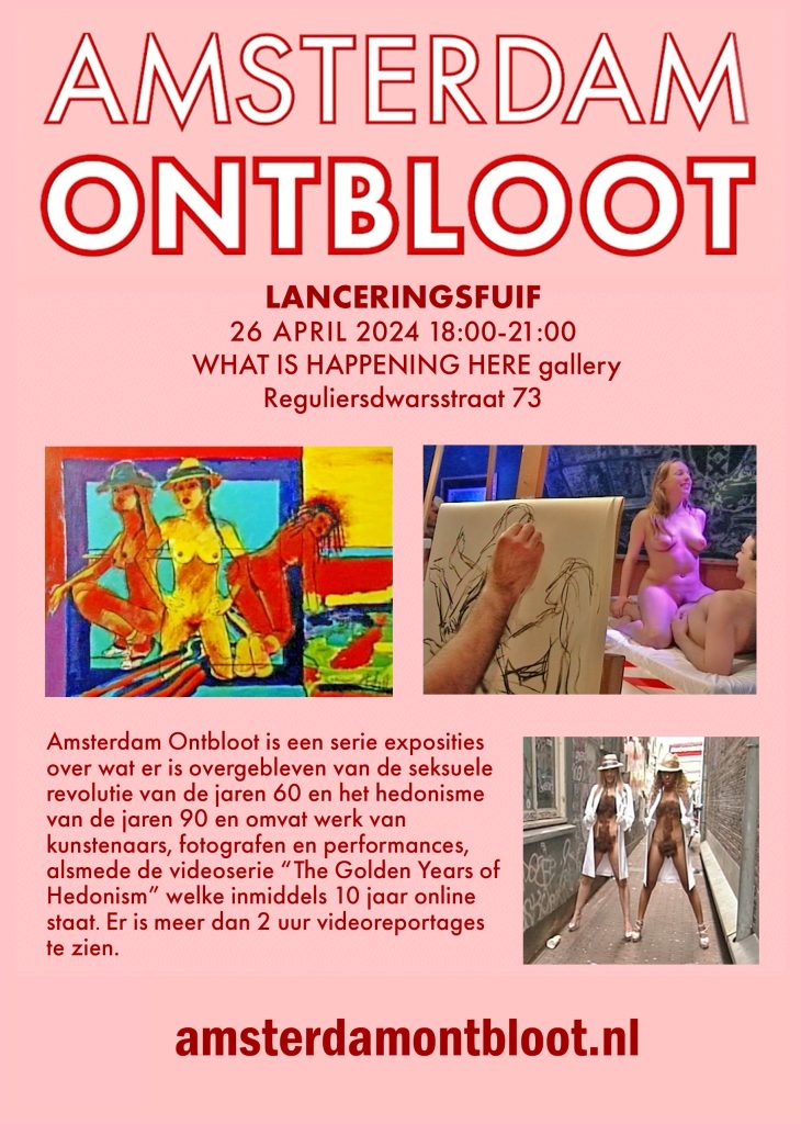 Amsterdam Ontbloot is een expositie over wat er is overgebleven van de seksuele revolutie van de jaren 60 en het hedonisme van de jaren 90. De internationale titel is “The Golden Years of Hedonism” en daar is reeds veel van beschikbaar als Video on Demand omdat we heel veel ontwikkelingen gevolgd hebben en nu nog steeds registreren wat met name Amsterdamse kunstenaars en performers doen op dit gebied. Bekijk de trailer om een indruk te krijgen.